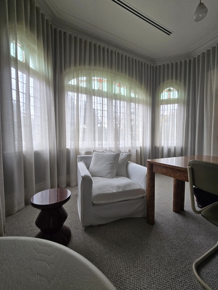 In June, we completed a sophisticated installation of floor-to-ceiling curtains for a home in Brighton. The project featured sheer curtains in James Dunlop Antipodes Sand paired with drapes in Warwick Linesta Alabaster, creating a layered, elegant look that balances light, privacy, and style. The soft, neutral tones complement the home’s interior, enhancing the sense of space while providing a timeless, refined aesthetic.