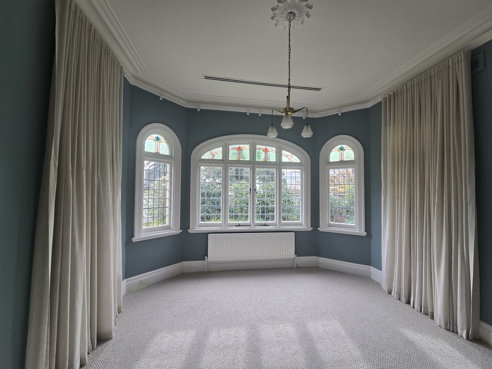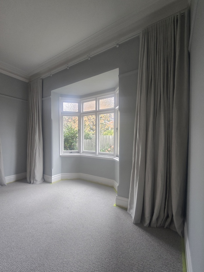 A standout feature of this project was the custom bent curtain track designed to follow the unique contours of the room. Many spaces include curves or angled walls, which can make standard tracks impractical. By crafting a tailored track, we ensured the curtains glide smoothly along every curve, creating a flawless finish and highlighting the room’s architectural features. This bespoke solution allowed for a natural, flowing appearance, adding both function and visual appeal.