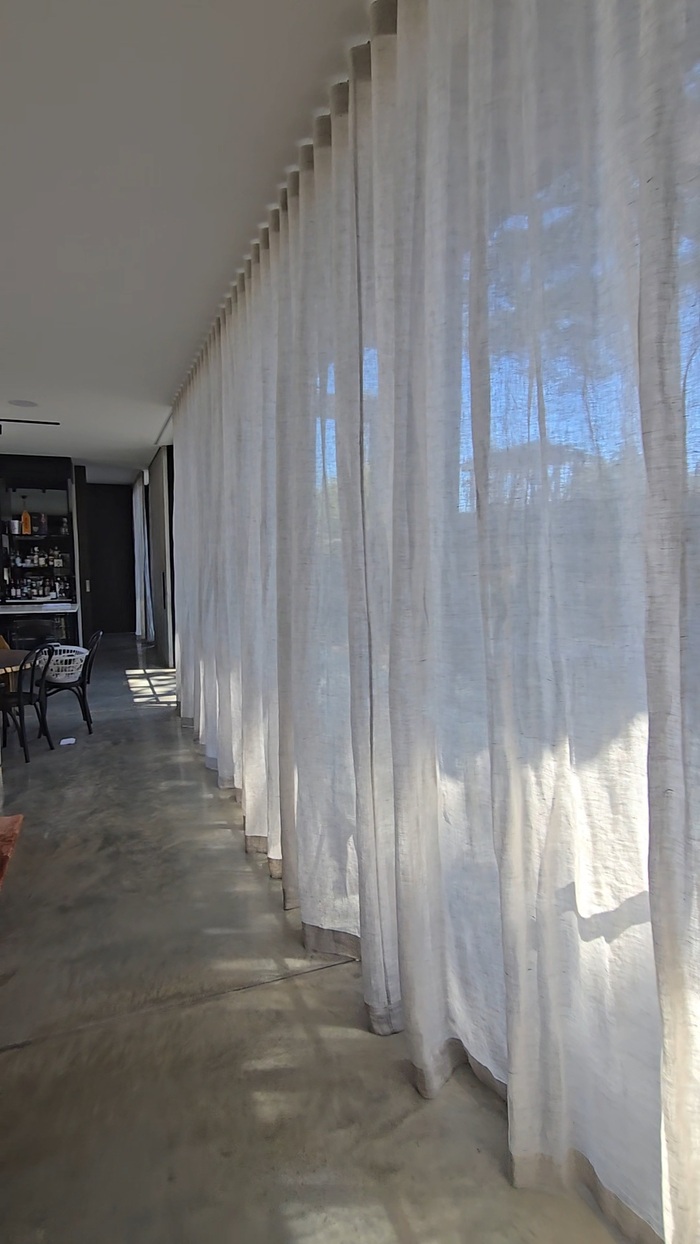 To complement the tracks, our client chose a sophisticated pairing of Mokum fabrics. The sheer layer, Mokum Bonsai in Pebble, softly filters natural light and enhances the sense of openness throughout the home. For complete blockout, Mokum Broadline in Tarmac provides privacy, insulation, and effective room darkening when needed. Together, these fabrics balance style with functionality, offering the flexibility to enjoy both lightness and comfort.