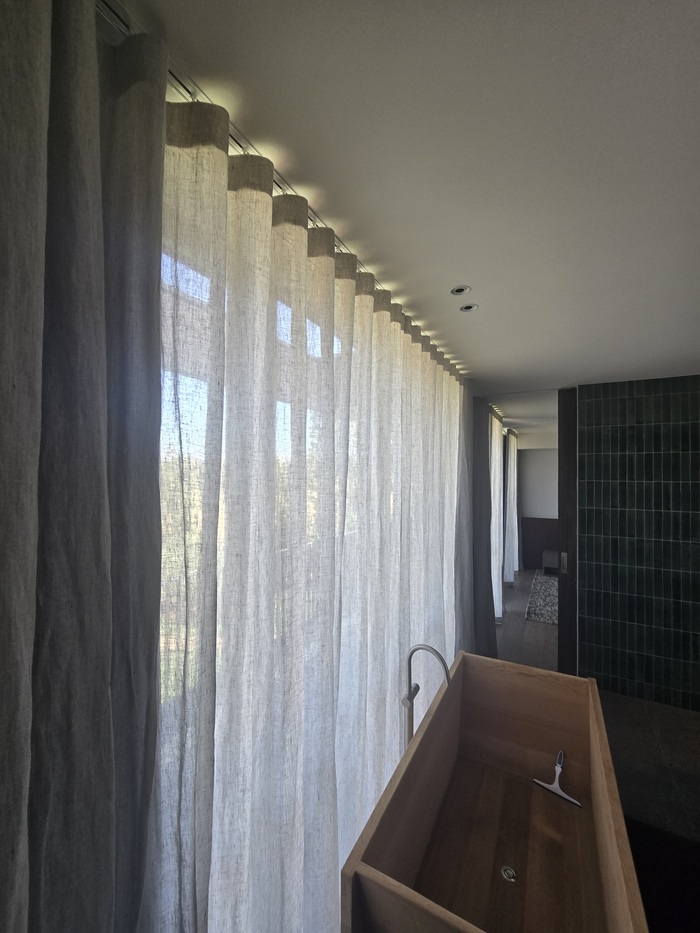 This week we completed a stunning installation in Kyneton, featuring Silent Gliss recessed ceiling-mounted motorised curtain tracks. These premium tracks were installed prior to plastering, which means once the plastering was complete they sat perfectly flush with the ceiling, creating a sleek, architectural finish.