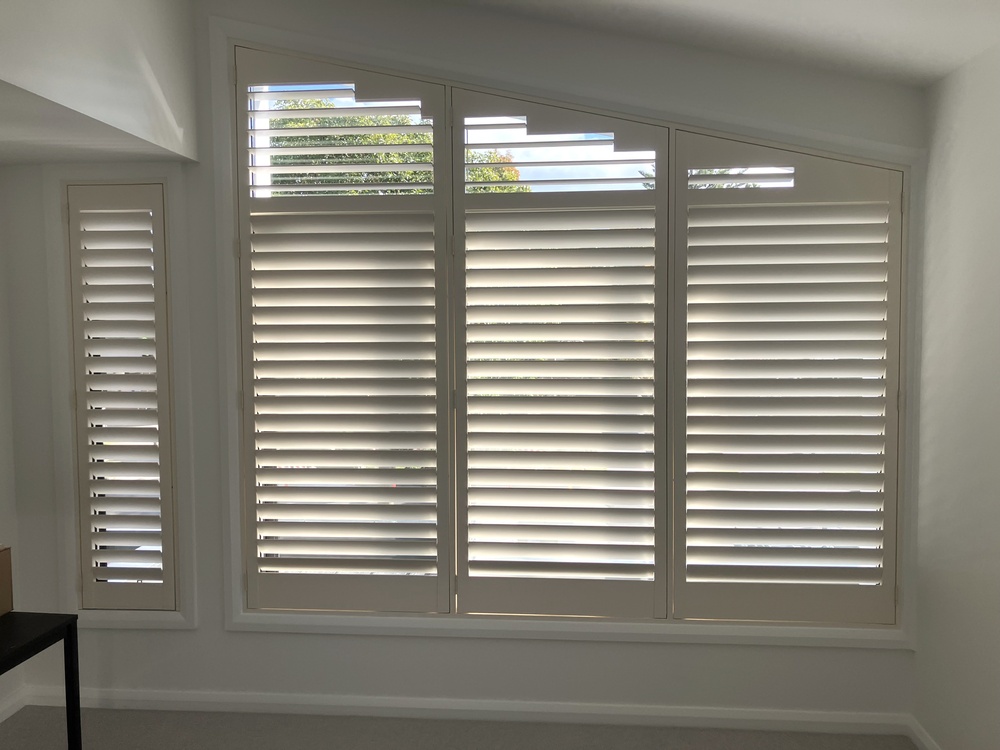 This Cheltenham installation demonstrates how plantation shutters can be tailored to suit both standard and custom windows, resulting in a cohesive look that transforms an interior.